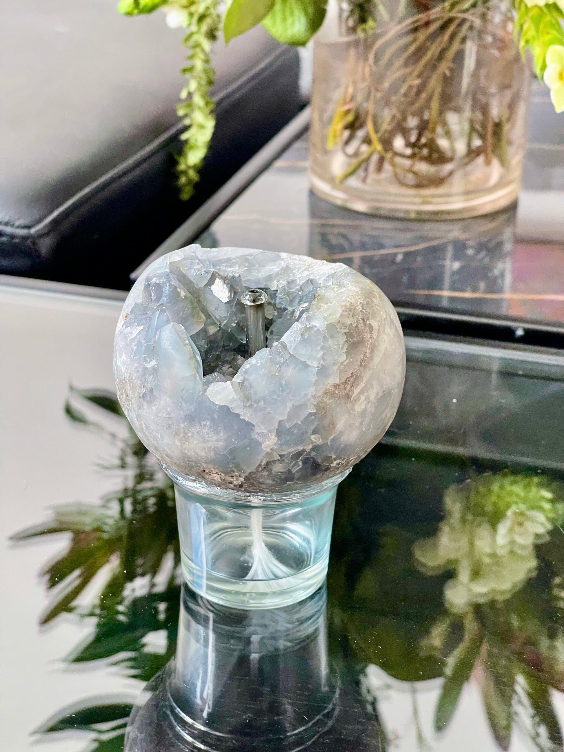 Elevate the natural beauty of crystals with our one of a kind, handmade oil candles. The Burning Stones are elegant, functional and sustainable, serving as a both a refillable candle & timeless decor. These pieces make for a thoughtful gift & unique addition to any home or office.