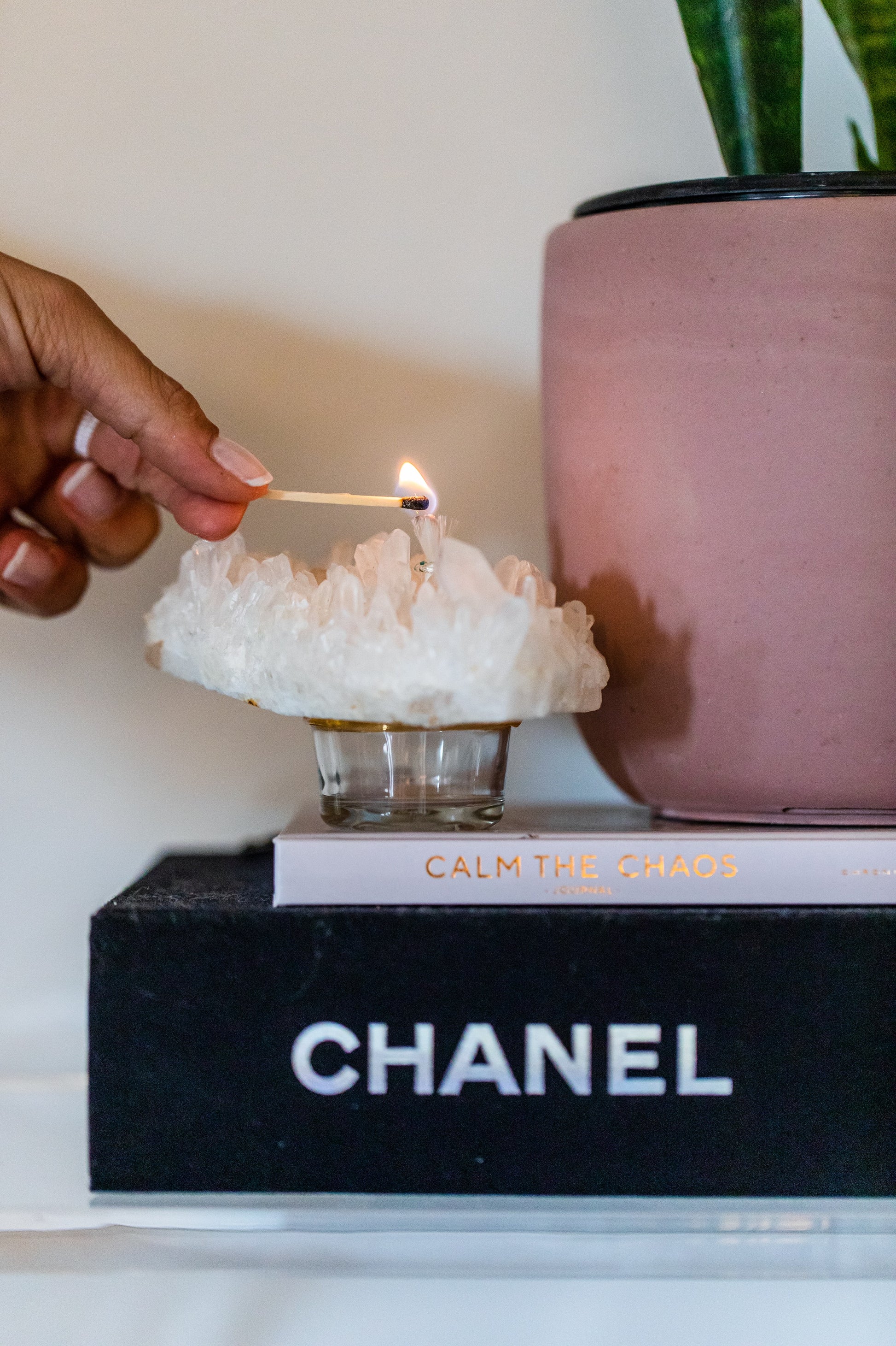 After we carefully select our crystals, we drill a hole into each stone and dock a glass reservoir to the base. Using the cleanest smokeless & odorless lamp oil, fill the reservoir, insert provided fiberglass wick & wick holder in the hole, soak, light and enjoy! As with all candles, we suggest you place your candle on heat-resistant surface, avoid drafts, keep away from small children & pets, burn within site & keep away from flammable items.